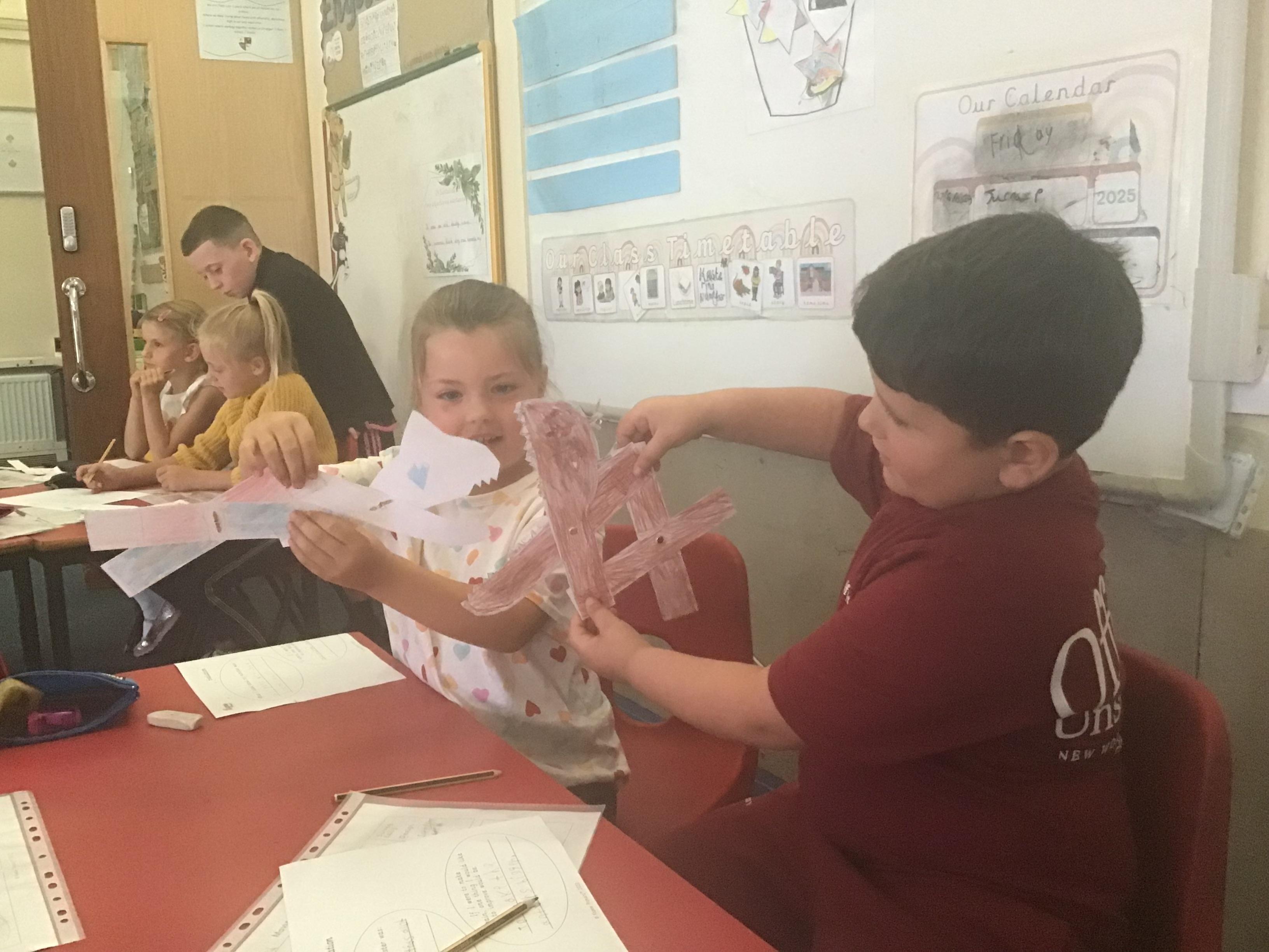Later on, they had a competition with Year 4 to see whose plane flew the furthest. A Year 3 child did win overall but all of the children's planes were fantastic.