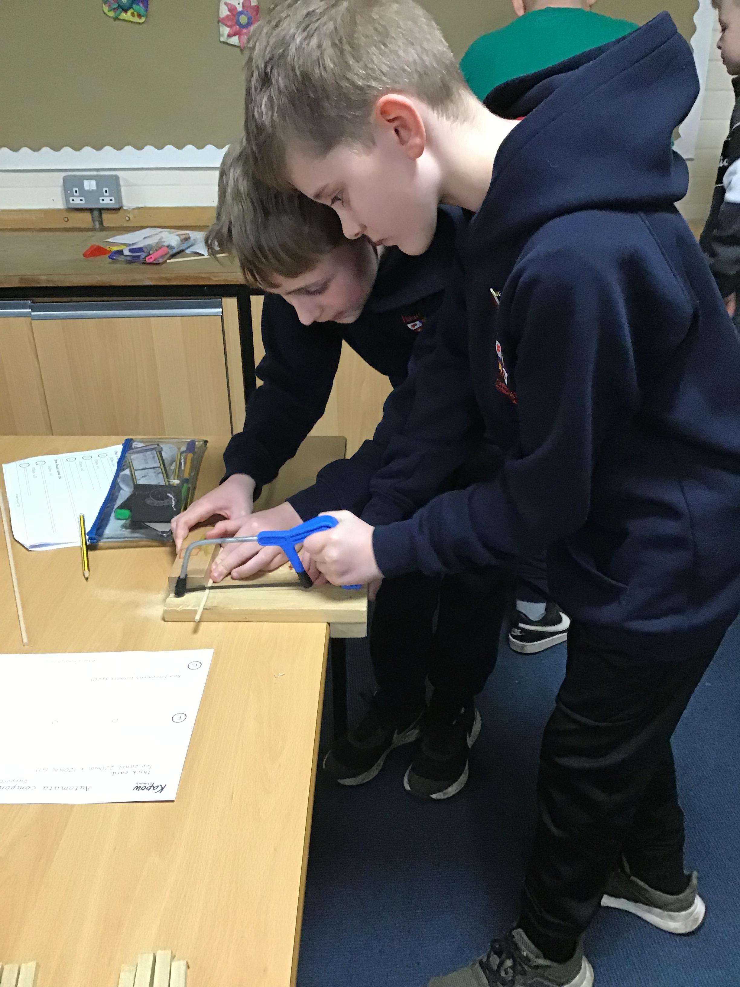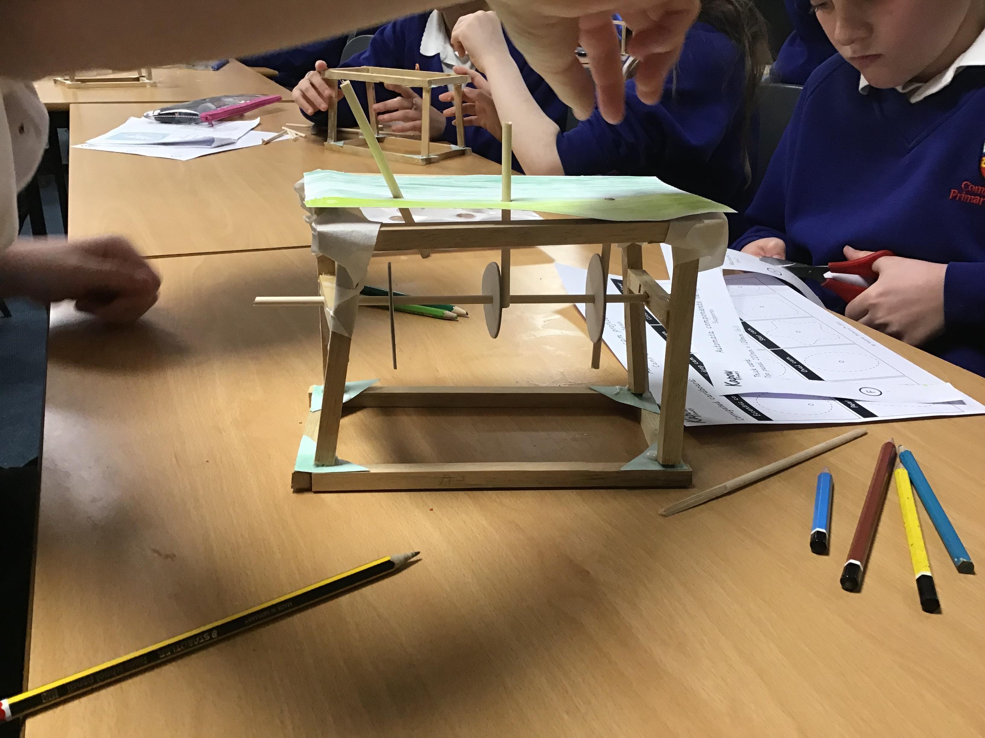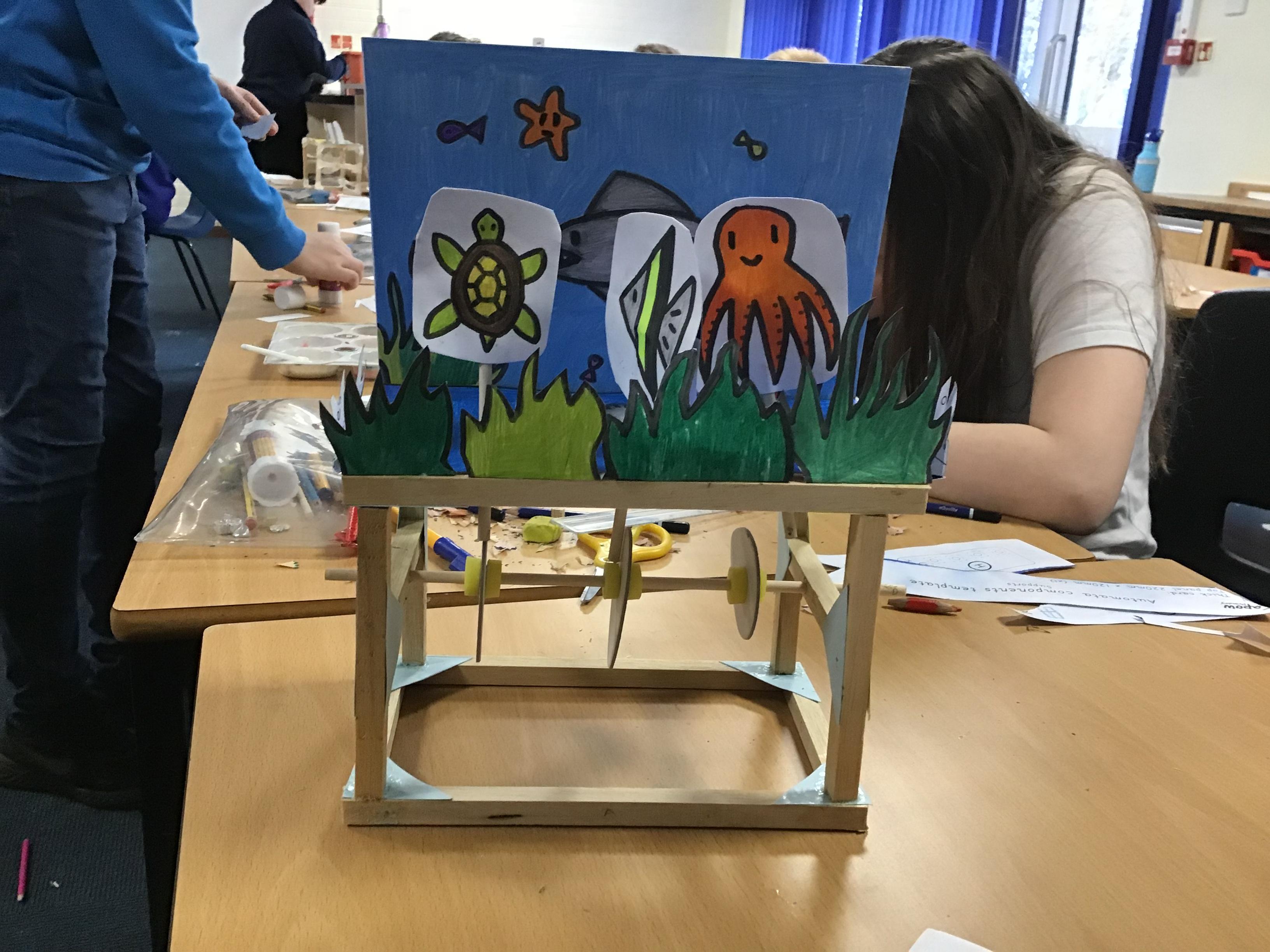 Year 6 created Automatas linked to their class text Hugo. We had to design them, measure and saw wood to create the frame, before assembling it all together. We faced a few issues which we had to solve by using different materials. The finished products look great.