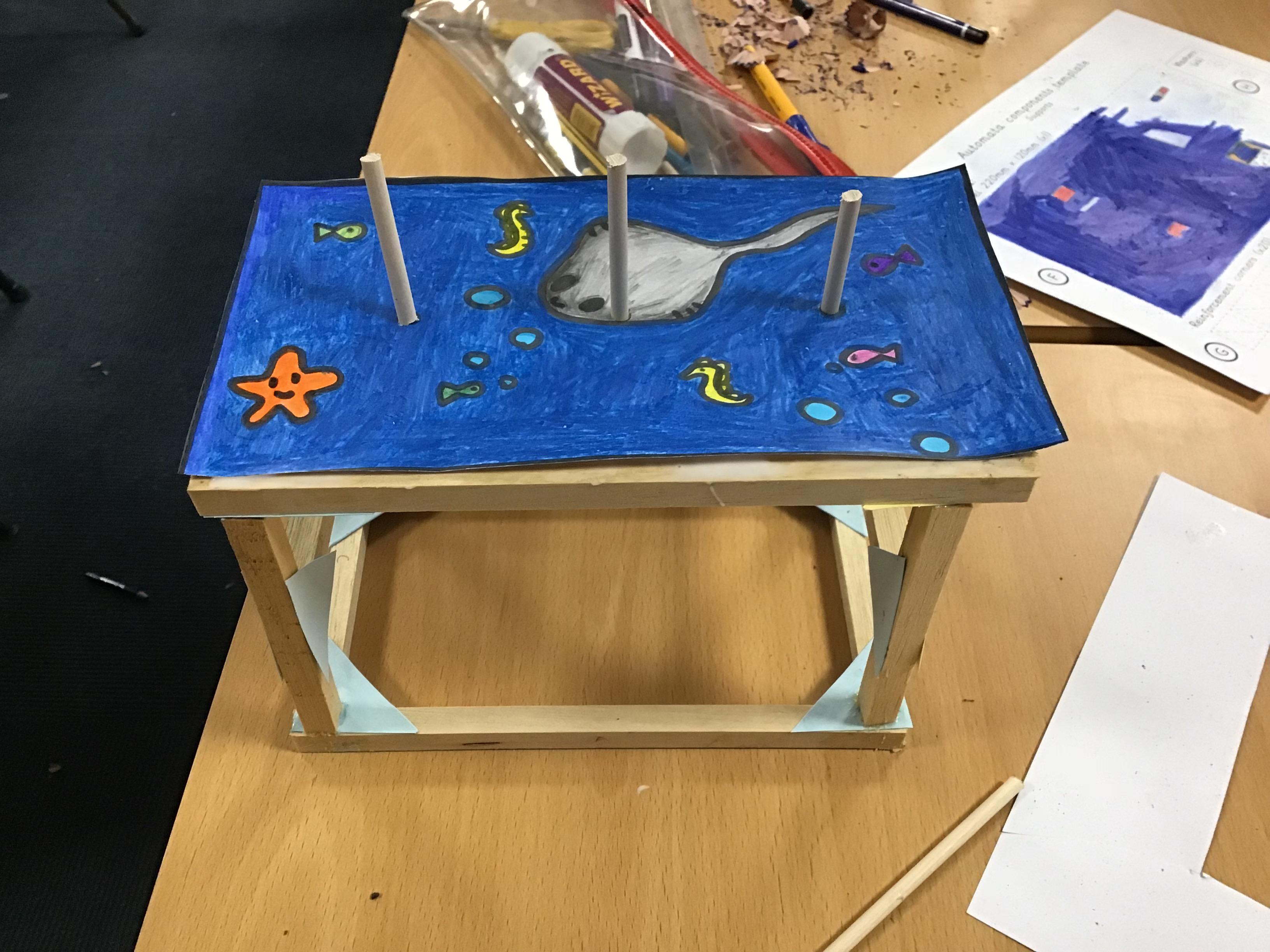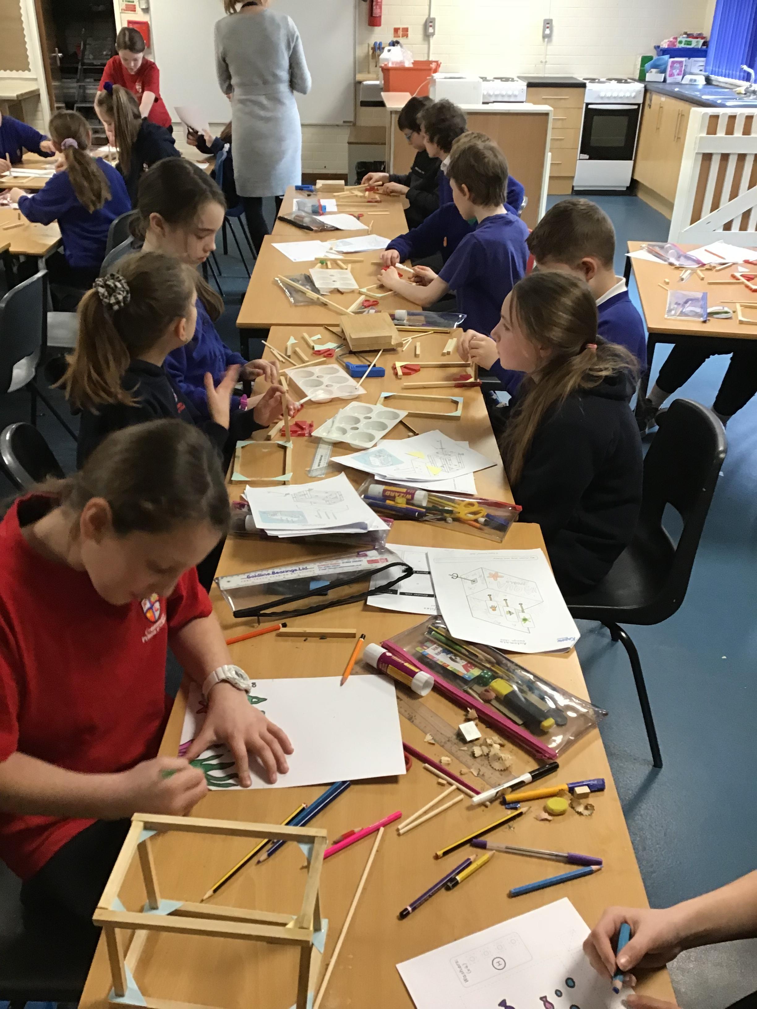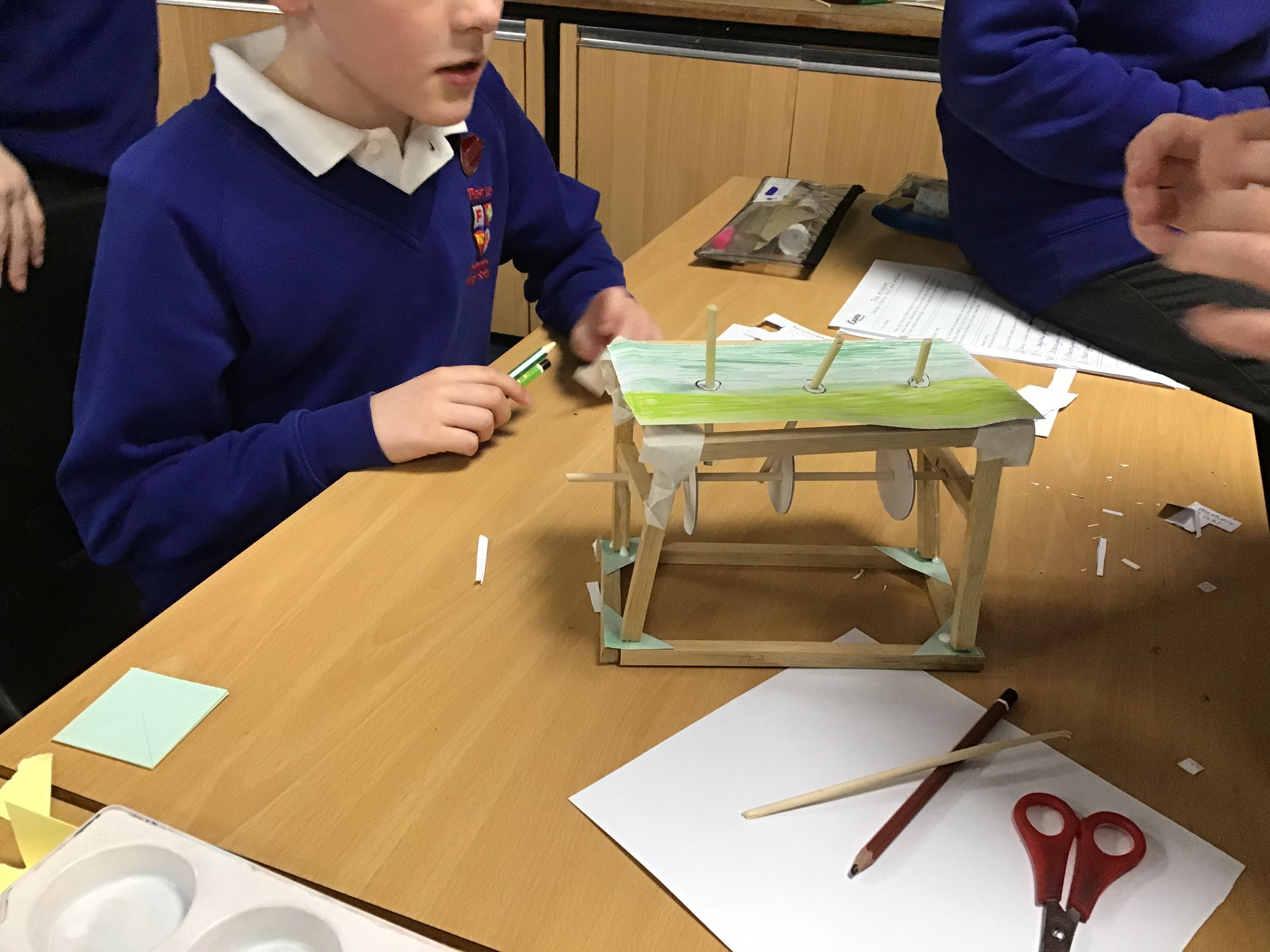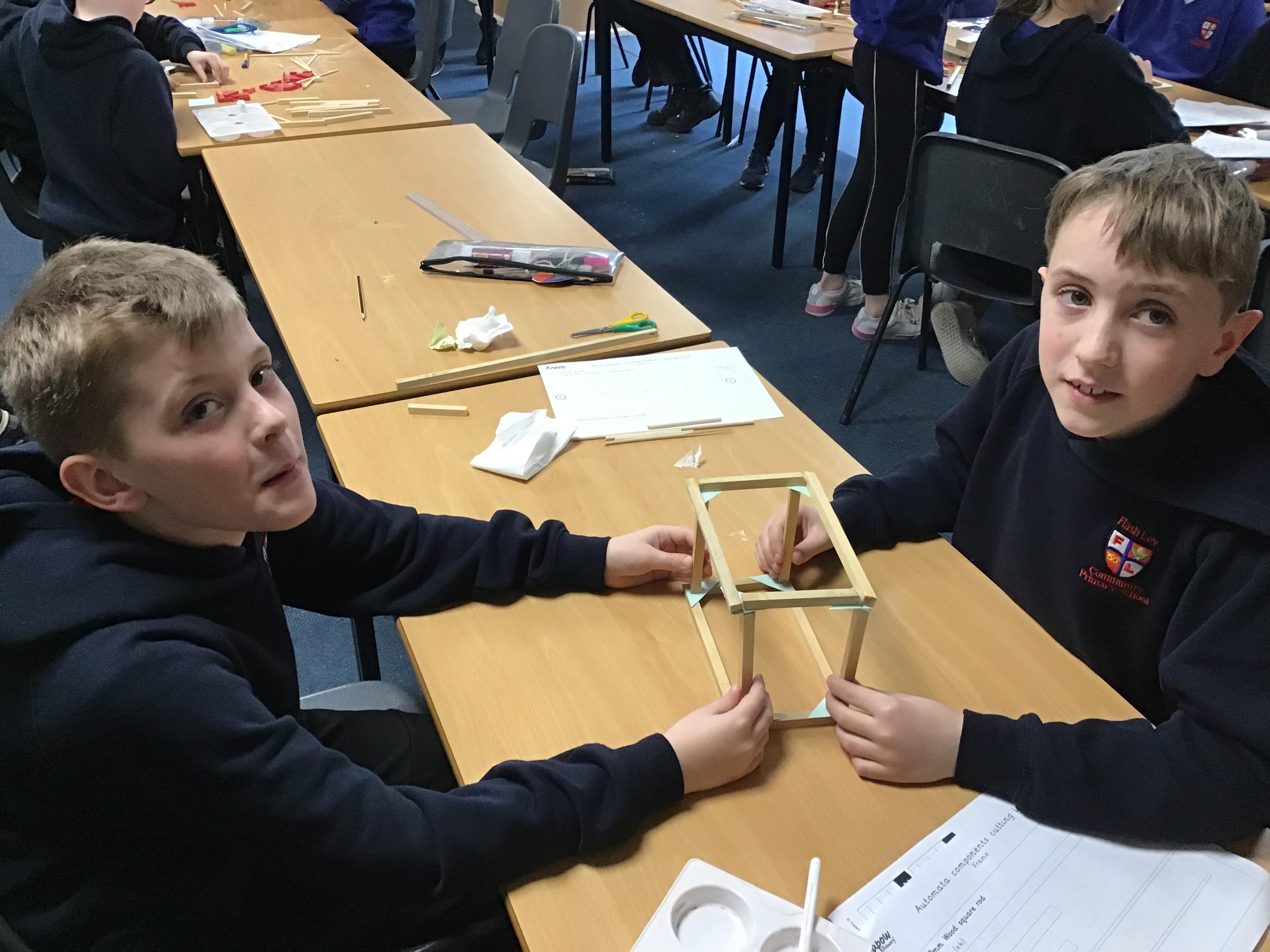 Year 6 created Automatas linked to their class text Hugo. We had to design them, measure and saw wood to create the frame, before assembling it all together. We faced a few issues which we had to solve by using different materials. The finished products look great.