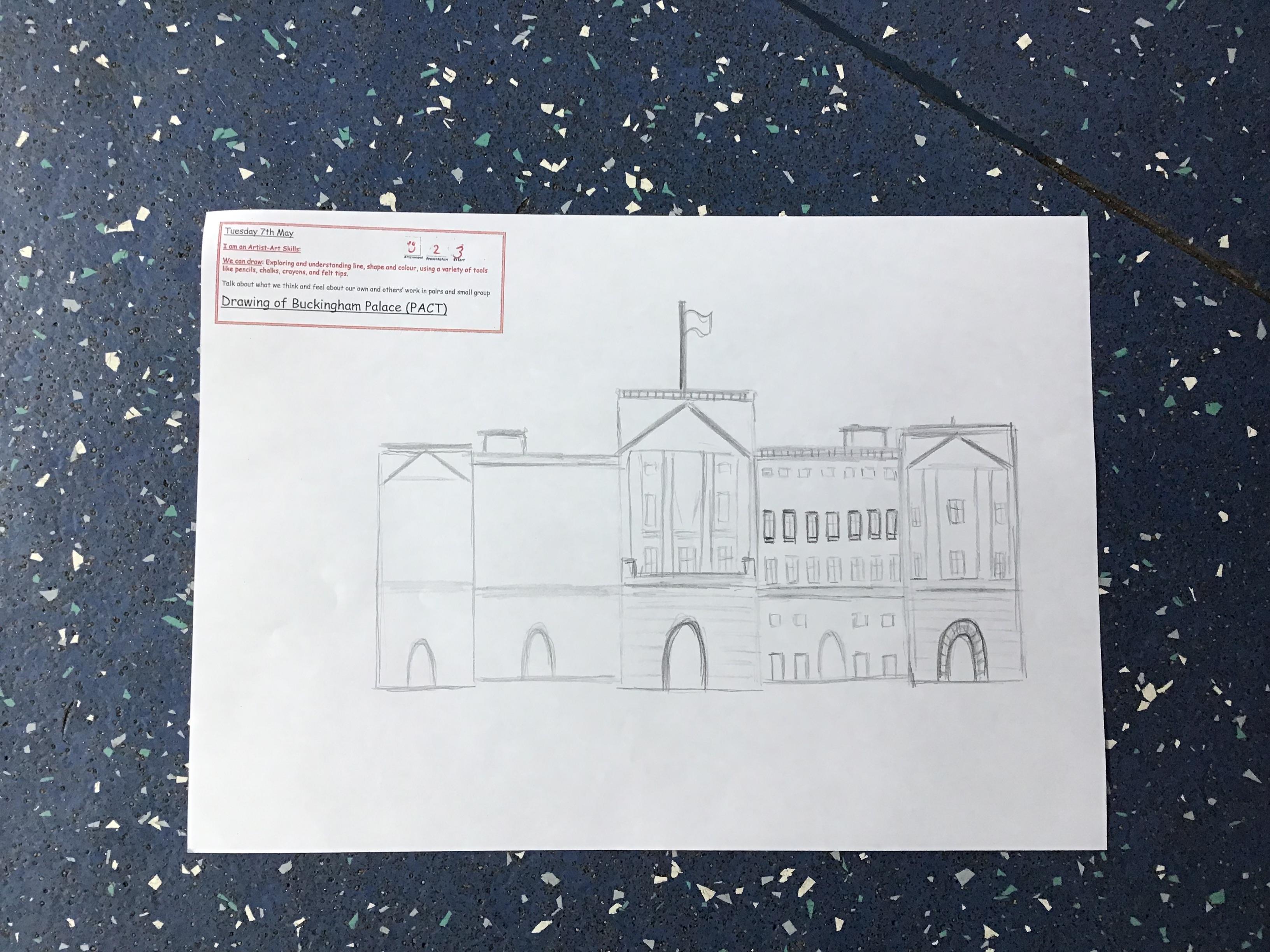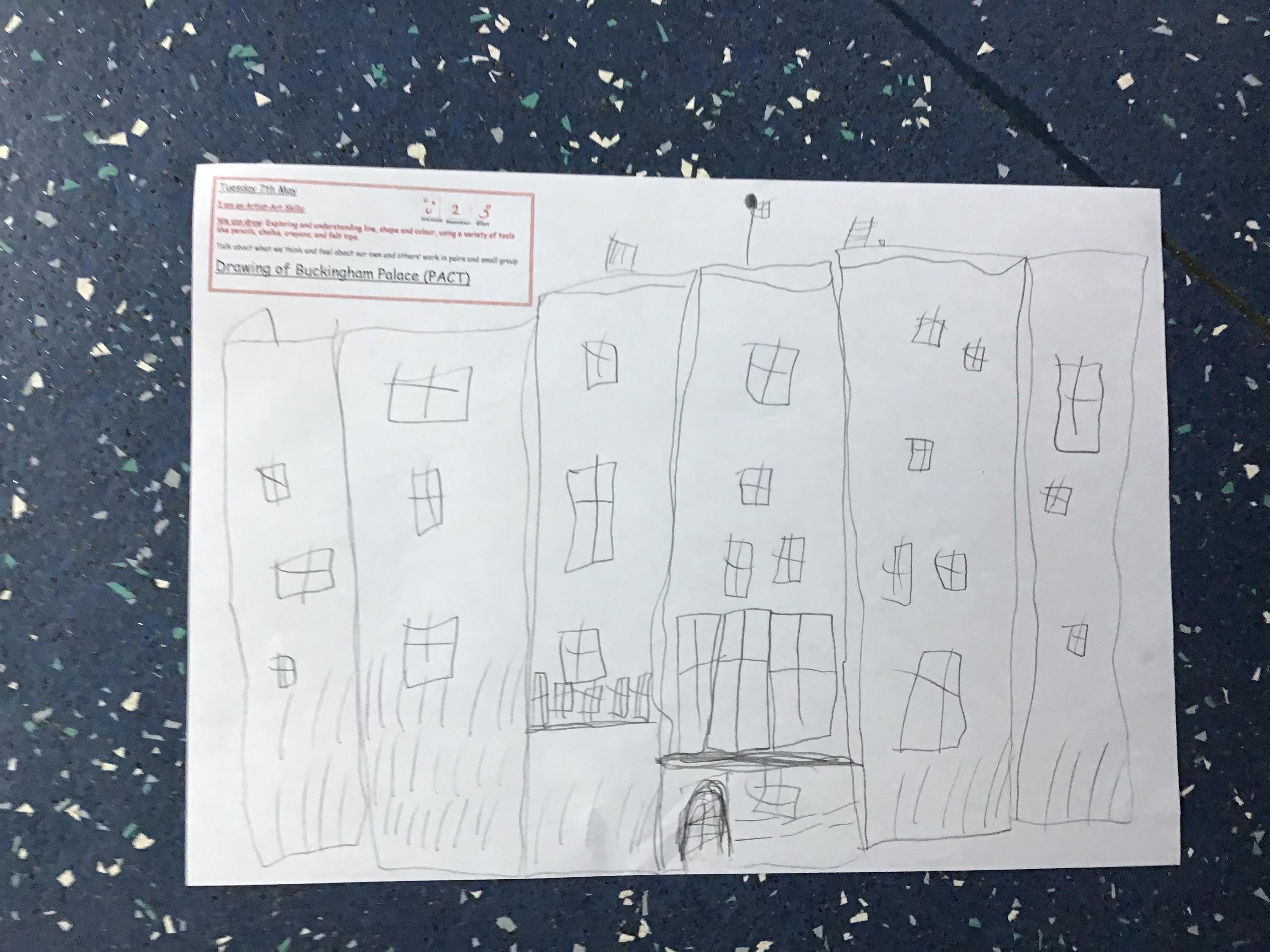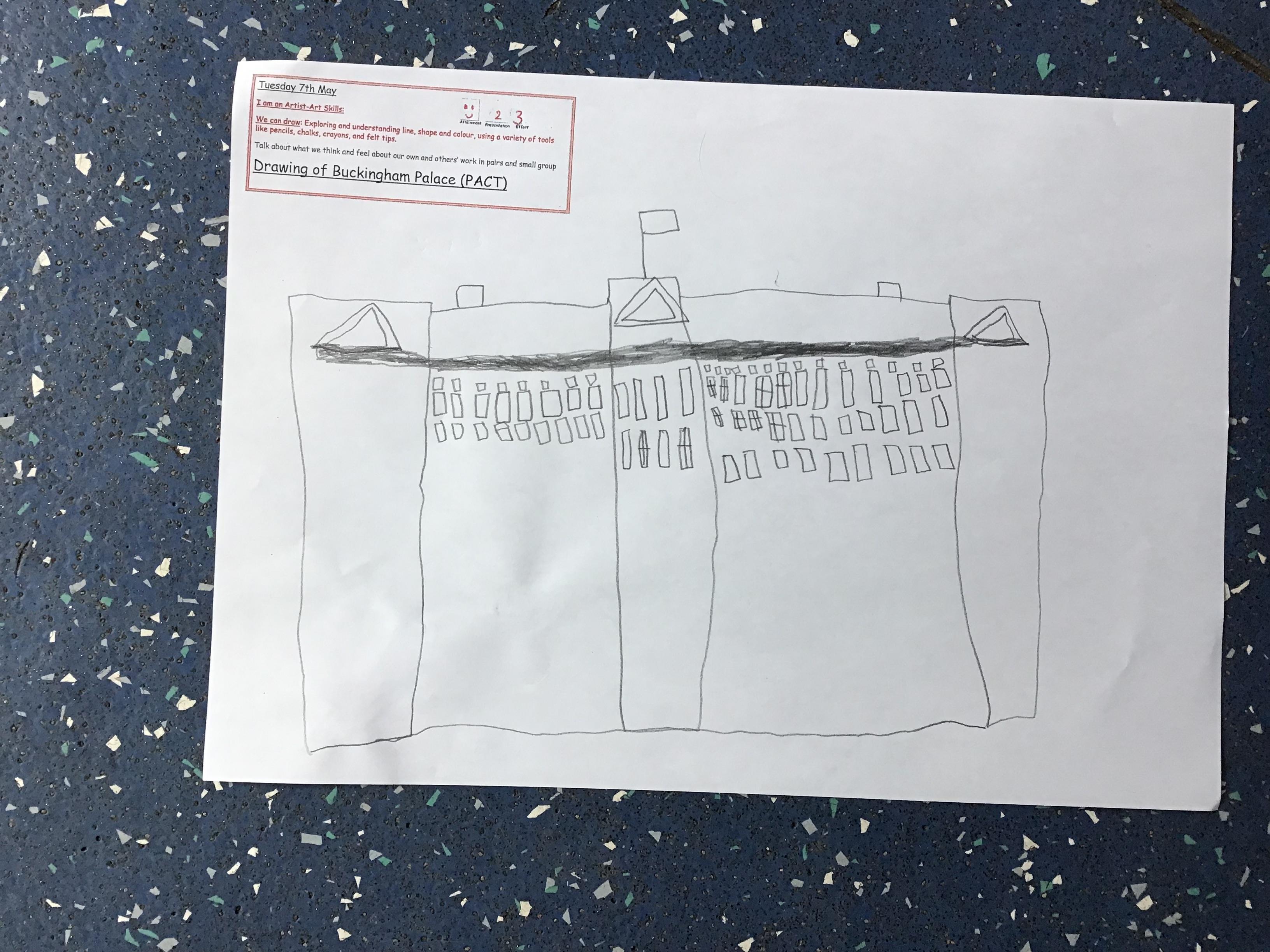 As part of Topic Queen Elizabeth II we learnt about Her home Buckingham Palace, did a quiz with the help from our adults and then drew a picture of the Palace using our Art Skills