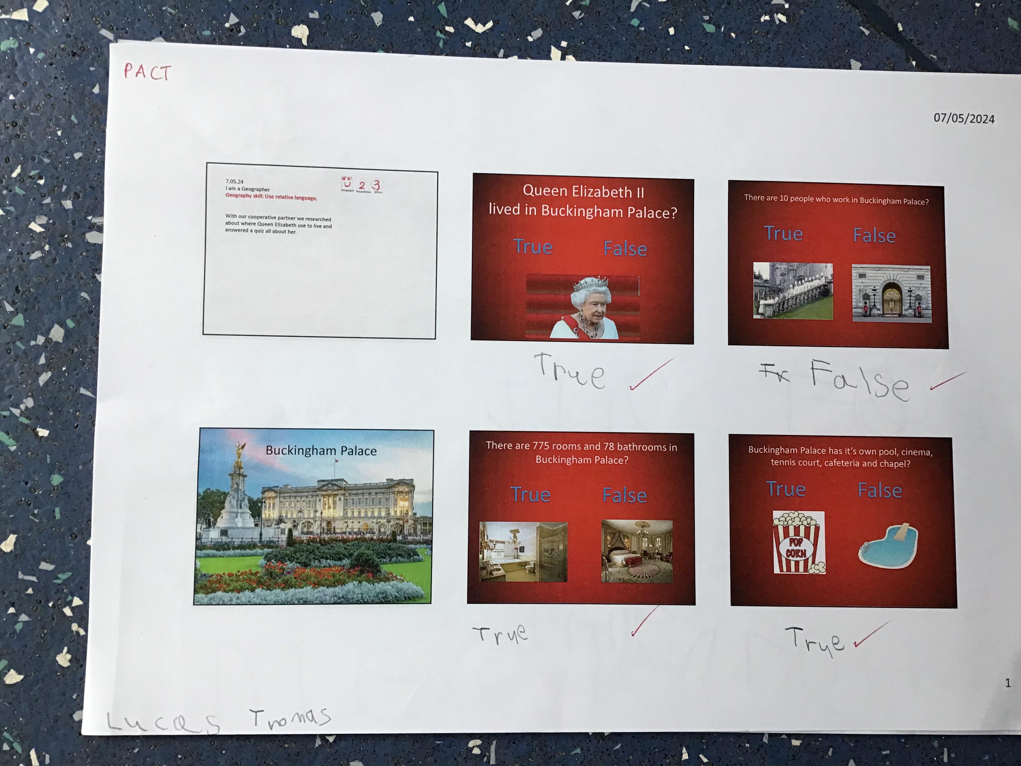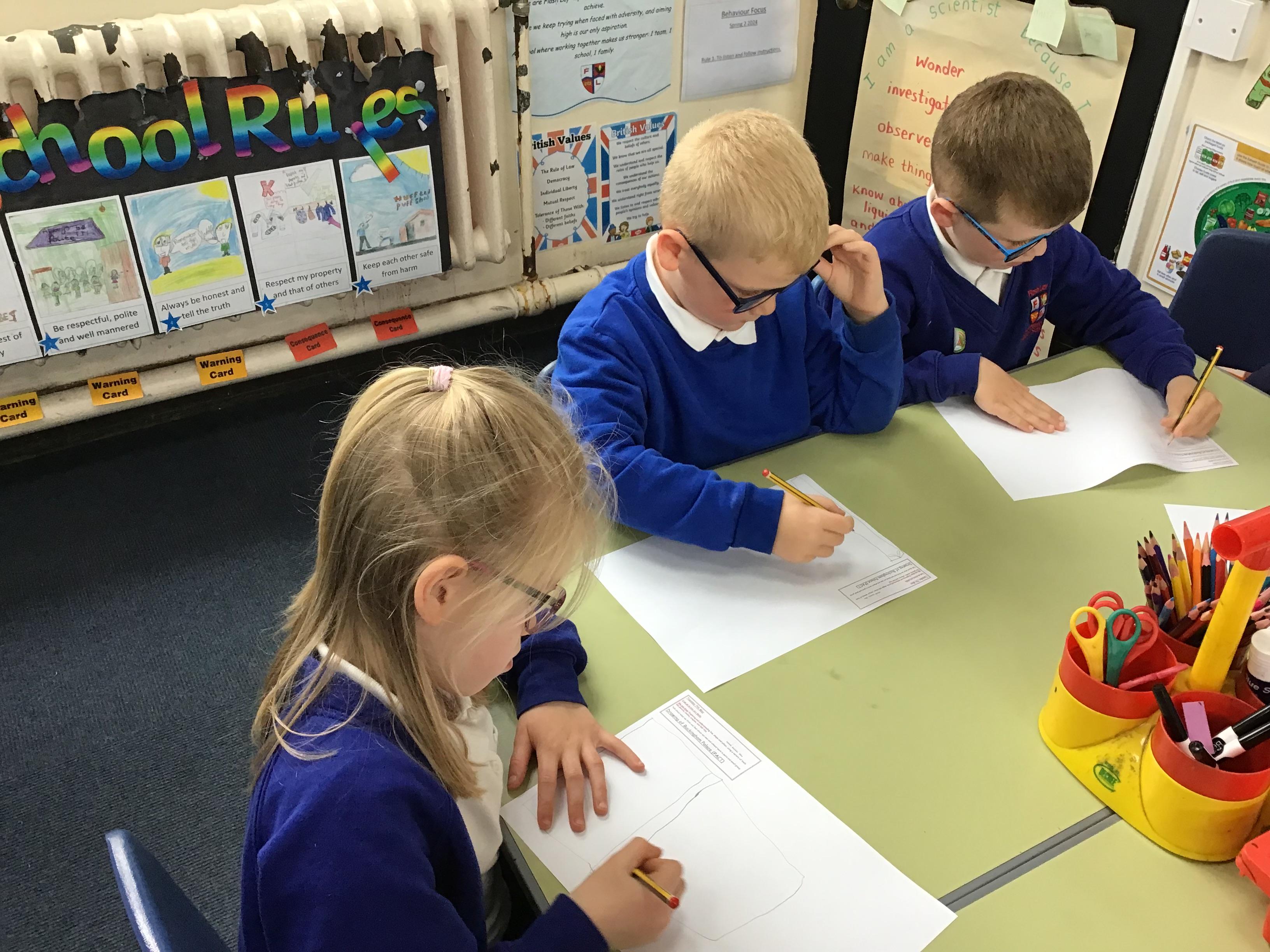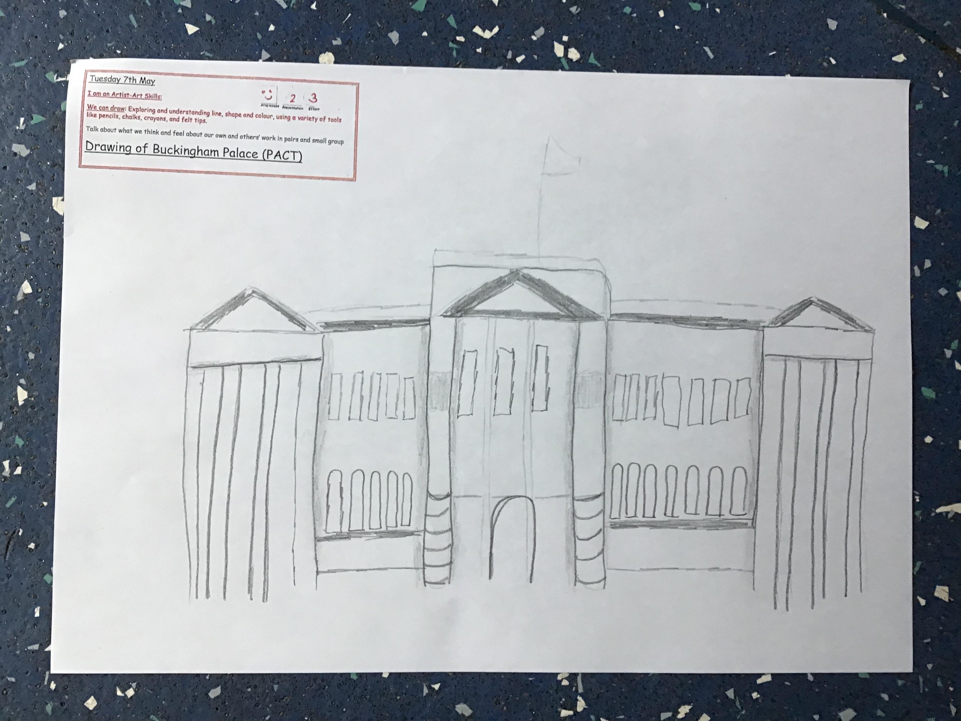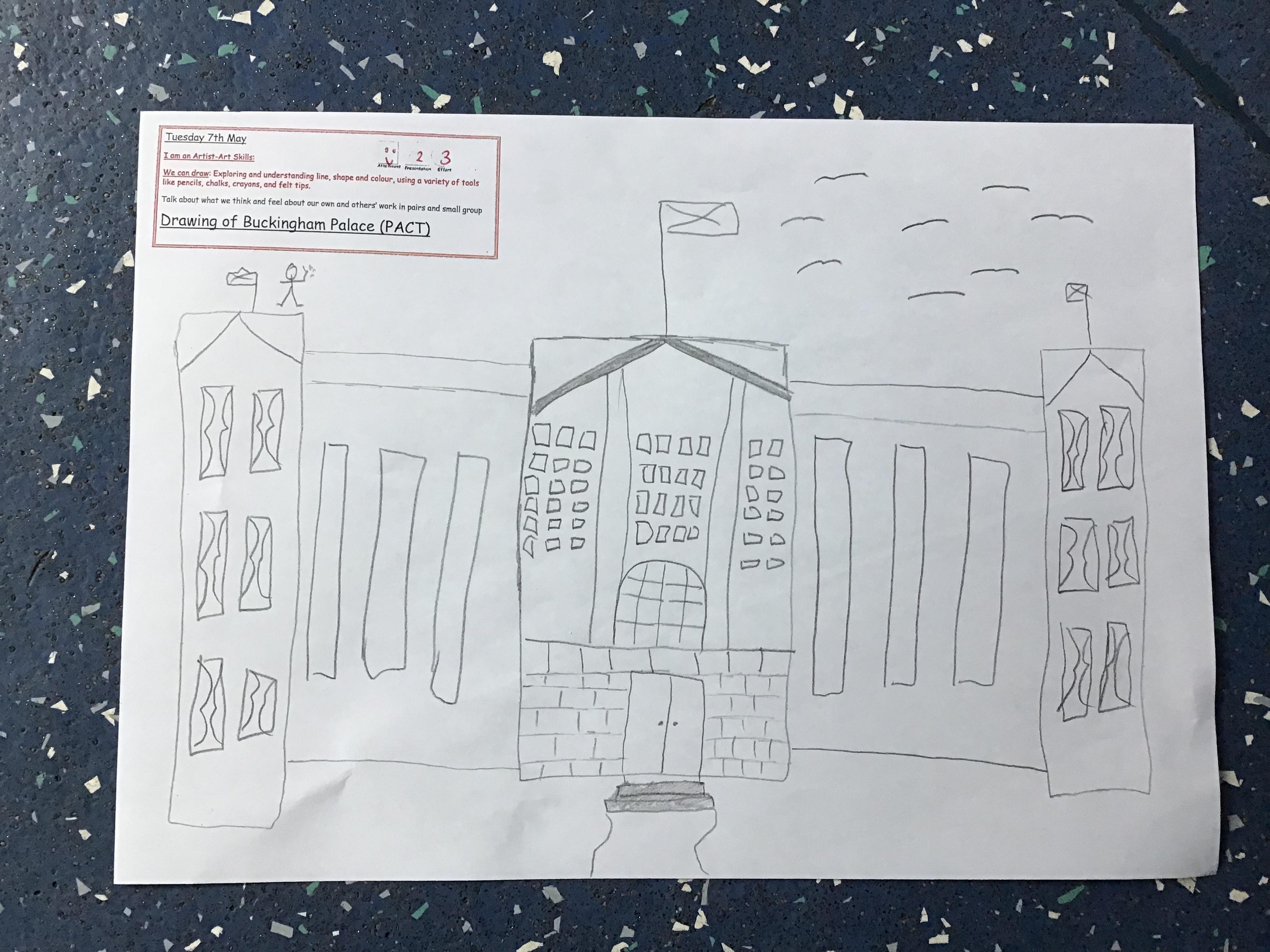 As part of Topic Queen Elizabeth II we learnt about Her home Buckingham Palace, did a quiz with the help from our adults and then drew a picture of the Palace using our Art Skills