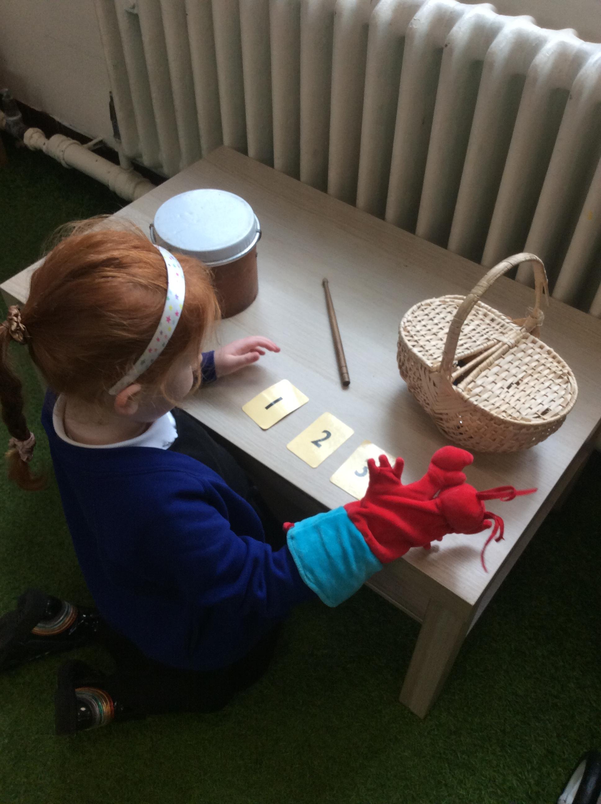 We have been practising careful counting. We are counting things we cant see like movements and sounds. What's the time Mr Wolf is one of our favourite counting games.