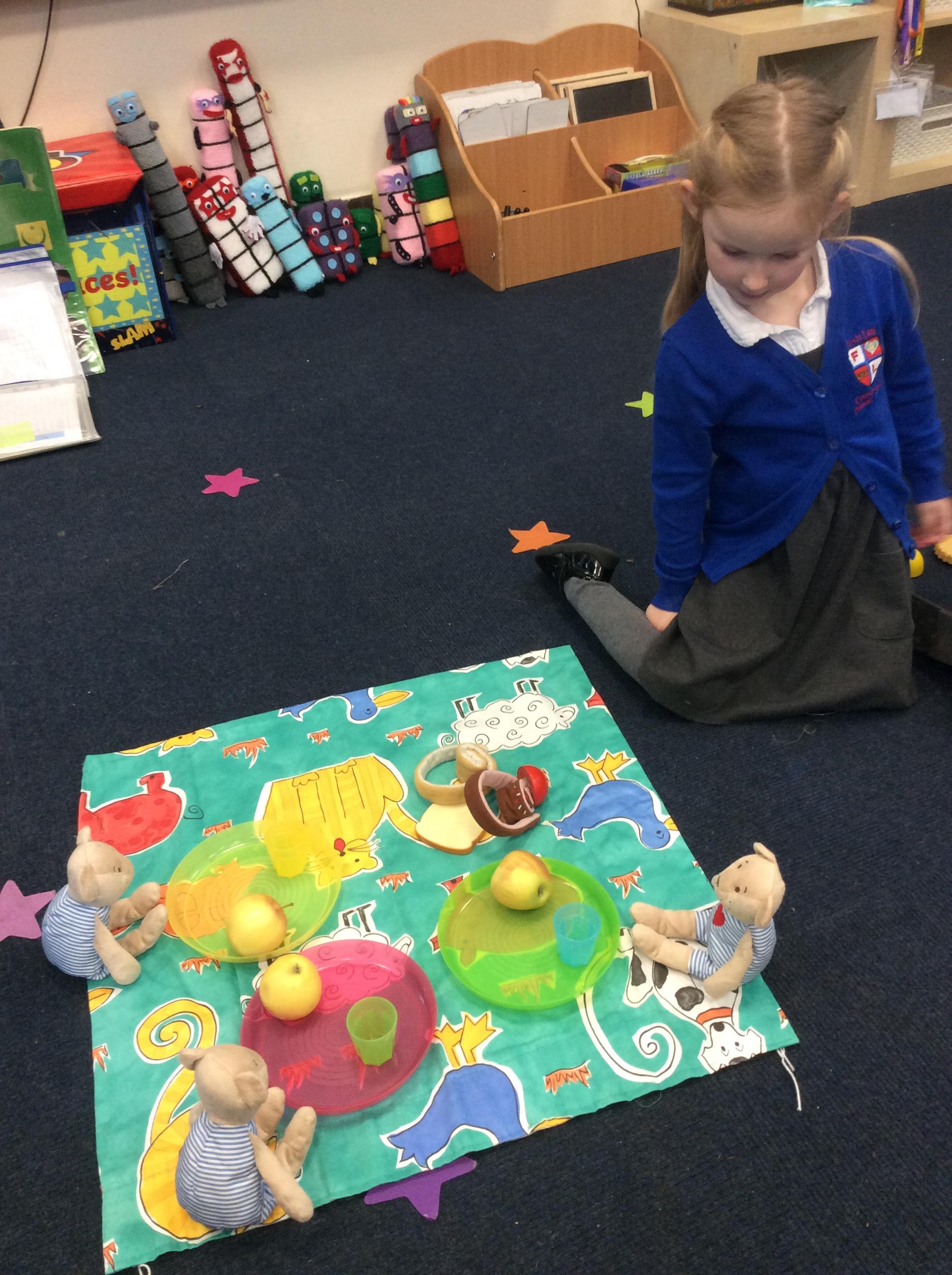 Comparing amounts in different ways helps us spot more, fewer and when groups are equal. We shared snack equally with our Numberblocks and at a teddy bears picnic.