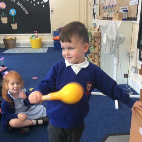 In Nursery we had lots of fun looking at different instruments from around the world. We looked at what they were made from and different ways to play them. We also joined up with Reception to learn some new songs for our celebration assembly.
