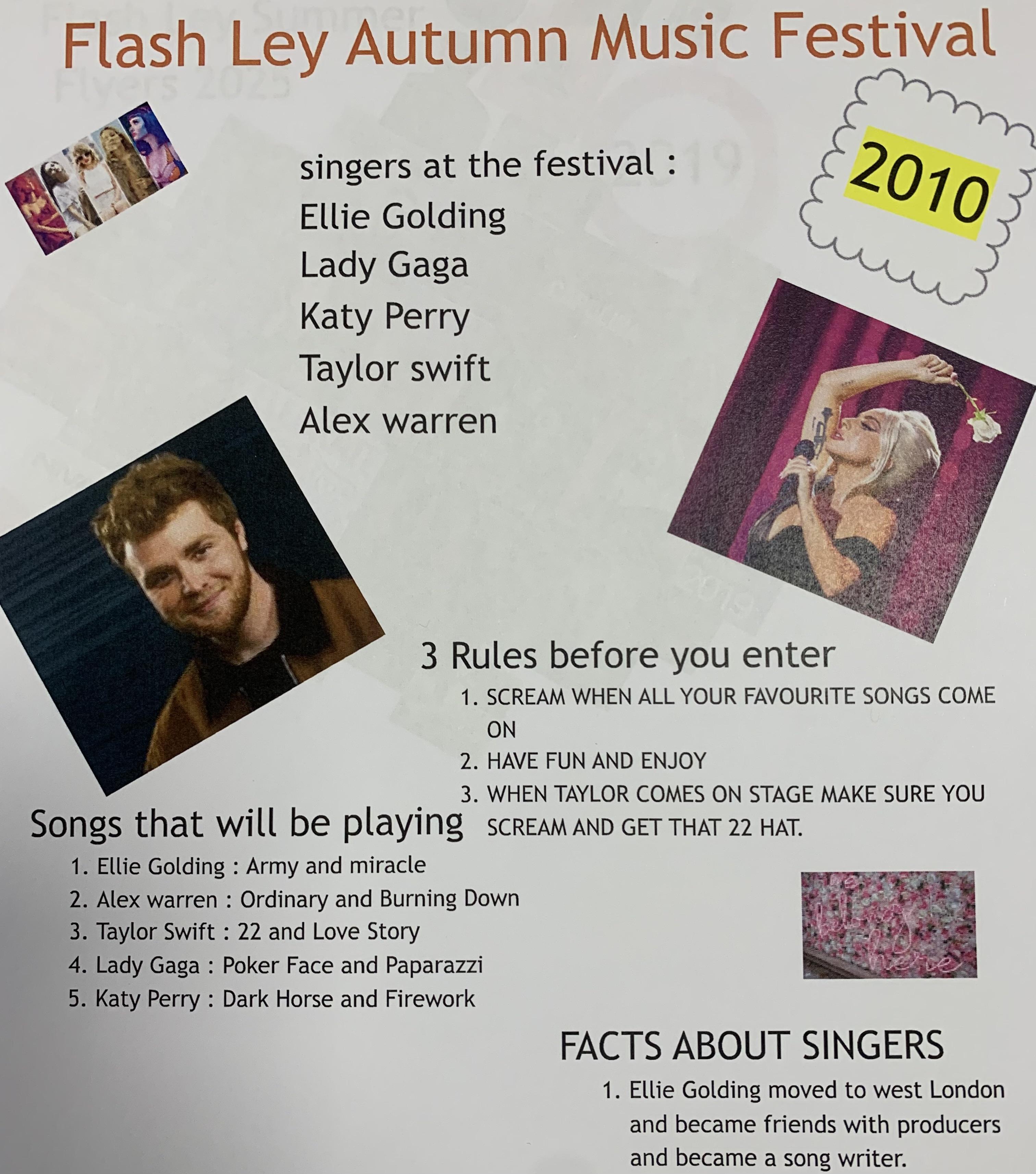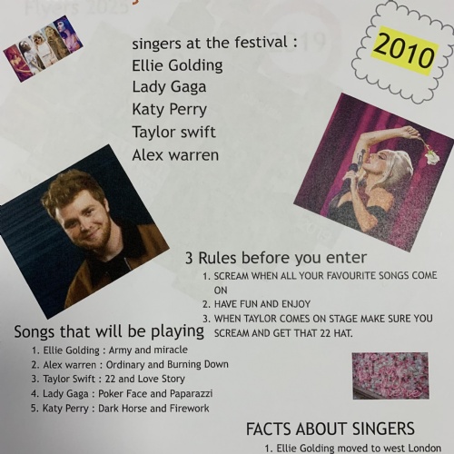 Finally we created music posters on any year of music. We chose a year that we thought had great music and had a choice of making celebration posters or an advertisement poster for a music festival with those artists.